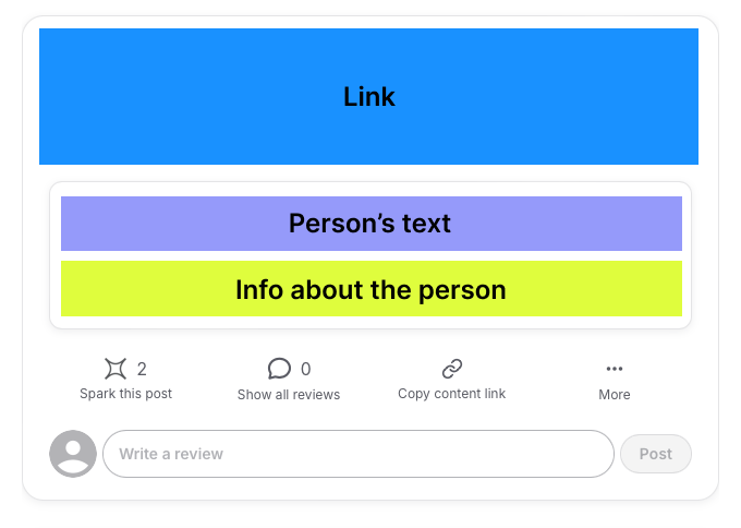 That's why the visual hierarchy starts with the content link, followed by the person's review text, and finally, the information about the person.