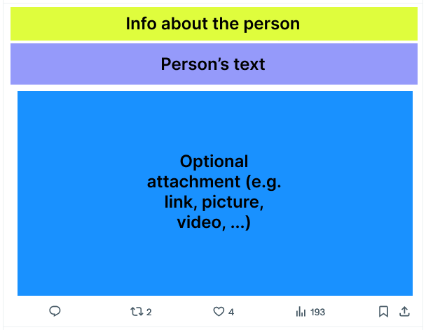 That's why information about the person is at the top of the visual hierarchy, followed by the person's text and optional attachments: